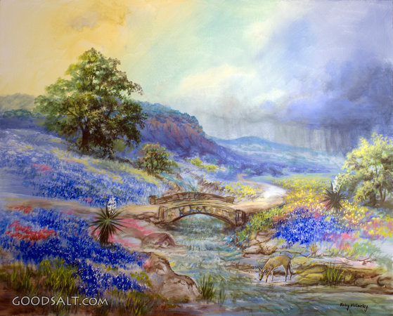 Showers of Blessings John 4:14 texas, deer, countryside, beauty, Landscapes, acrylic, landscape painting, texas state flower, the bluebonnet, bluebonnet, beautiful country scenes PROJECTION - License for PowerPoint™ PRINT – buy a print of this picture; optional frame Bible Hub |