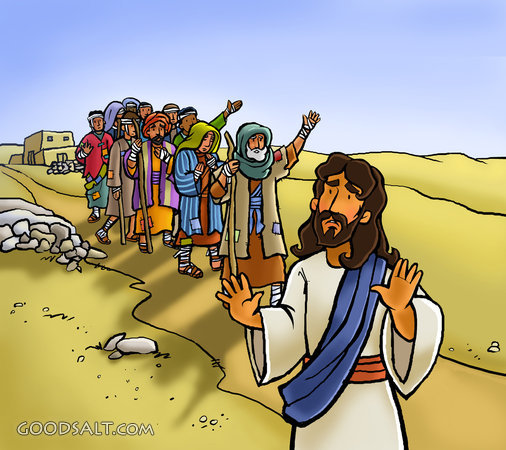 Jesus and the Ten Lepers Luke 17:11-19 heavy, outside, calling, christ, Jesus, line, style, part, ten, mercy, merciful, savior, ink, of, road, village, pleading, hearing, art, on, us, saviour, lepers, division, Series, A, childrens, children's, have, ksjas0035, jesus and the ten lepers PROJECTION - License for PowerPoint™ PRINT – buy a print of this picture; optional frame Bible Hub |