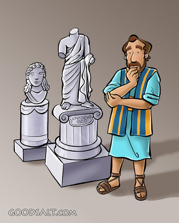 Paul and the Unknown God Acts 17:16 god, greek, thinking, apostle, contemplate, pillar, paul, gospel, unknown, missionary, athens, Gentiles, childrens style, kim justinen, childrens art, statues, the unknown god, paul and the unknown god, ksjas0177, broken statue, hand on chin PROJECTION - License for PowerPoint™ PRINT – buy a print of this picture; optional frame Bible Hub |