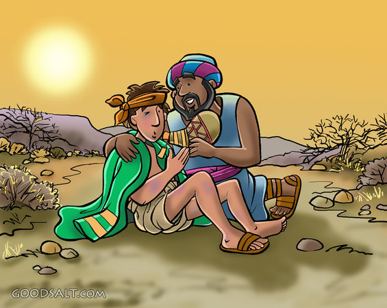 The Good Samaritan Luke 10:33 Luke 10:29-37 Leviticus 19:18 saving, helping, injured, aid, samaritan, beaten, man, neighbor, assisting, hurt, good, the good samaritan, injured man, kim justinen, childrens art, heavy line style, heavy line, neighbour, aiding, left half dead, ksj0192 PROJECTION - License for PowerPoint™ PRINT – buy a print of this picture; optional frame Bible Hub |