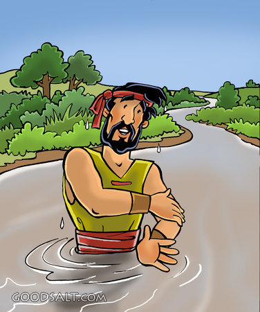 muddy, miracle, bath, jordan, river, healed, naaman, obey, bathing, washing, division, children's