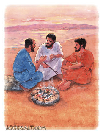 Jesus, breakfast, collection, john, peter, cook, shore, fish, friends, lifeway, cheri bladholm, lfwas0049
