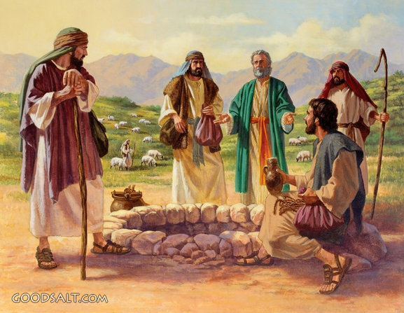 Isaac Discussing to Whom the Water Belongs Genesis 26:17-20 standing, collection, stone, isaac, sheep, kind, wall, sitting, well, mountainside, shepherds, lifeway, corbert gauthier, valley of gerar, lfwas0129 PROJECTION - License for PowerPoint™ PRINT – buy a print of this picture; optional frame Bible Hub |