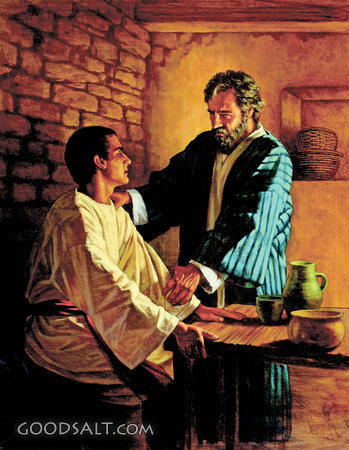 Ananias Helped Saul Acts 9:1-12 blind, standing, collection, restored, saul, wall, paul, sitting, brick, hands, Ananias, shoulders, Helped, lifeway, corbert gauthier, eyesight, lfwas0133 PROJECTION - License for PowerPoint™ PRINT – buy a print of this picture; optional frame Bible Hub |