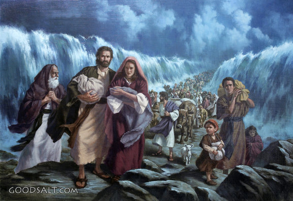 The Israelites Crossing the Red Sea Exodus 14:1-31 carrying, water, crossed, back, collection, sea, baby, lamb, red, moses, parting, children, israelites, lifeway, corbert gauthier, pushed, belongings, lfwas0168 PROJECTION - License for PowerPoint™ PRINT – buy a print of this picture; optional frame Bible Hub |