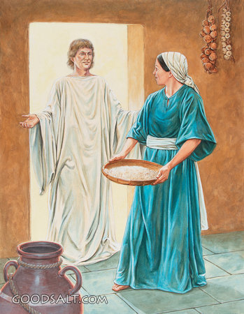 The Birth of Jesus Is Announced to Mary by Gabriel Matthew 1:18-25 angel, doorway, standing, holding, Jesus, birth, outstretched, collection, tray, gabriel, arms, announced, sideways, nearby, lifeway, adam hook, lfwas0218 PROJECTION - License for PowerPoint™ PRINT – buy a print of this picture; optional frame Bible Hub |