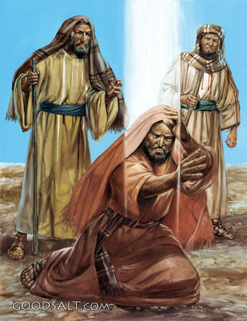 Saul Meets Jesus Acts 9:3-9 standing, two, Jesus, voice, collection, see, spoke, men, saul, heaven, light, of, from, on, with, knees, Meets, heard, shone, lifeway, richard hook, but, didn't, anything, speechless, lfwas0232 PROJECTION - License for PowerPoint™ PRINT – buy a print of this picture; optional frame Bible Hub |