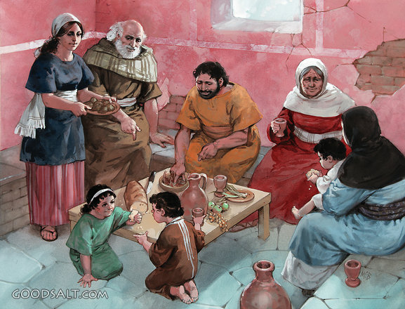 gather, collection, eating, early, church, food, home, Believers, lifeway, angus mcbride, lfwas0479
