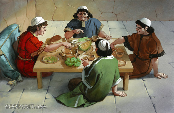Daniel Chooses Good Food Daniel 1:8 test, water, choice, collection, food, daniel, simple, good, friends, vegetables, Chooses, pulse, lifeway, angus mcbride, lfwas0528 PROJECTION - License for PowerPoint™ PRINT – buy a print of this picture; optional frame Bible Hub |