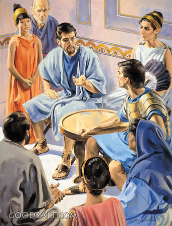 Peter Tells of Jesus Acts 2:38 Jesus, teach, collection, peter, centurion, roman, witness, gentile, cornelius, Tells, Believers, household, lifeway, p. mann PROJECTION - License for PowerPoint™ PRINT – buy a print of this picture; optional frame Bible Hub |