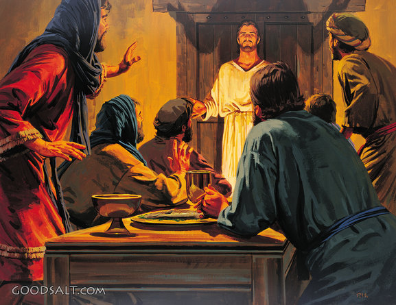 Jesus Appears behind Locked Doors John 20:26 John 20:19 Jesus, collection, doubt, locked, resurrected, thomas, disciples, upper room, Doors, Appears, lifeway, p. mann PROJECTION - License for PowerPoint™ PRINT – buy a print of this picture; optional frame Bible Hub |