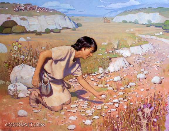 goliath, stone, riverbed, stream, david, sling, david and goliath, lifeway, frank ordaz, lfwas0938