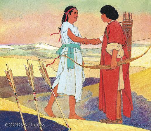 Jonathan Loves His Friend 1 Samuel 18:1 collection, friend, friendship, david, jonathan, friends, Loves, lifeway, bill shires, lfwas0990, lifewaybill shires PROJECTION - License for PowerPoint™ PRINT – buy a print of this picture; optional frame Bible Hub |