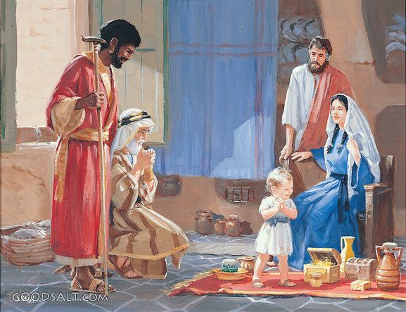 Gifts for Jesus Matthew 2:11 Jesus, collection, joseph, mary, gold, magi, christmas, frankincense, myrrh, gifts, john steel, Wisemen, lifeway, lfwas1035 PROJECTION - License for PowerPoint™ PRINT – buy a print of this picture; optional frame Bible Hub |