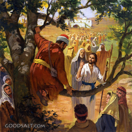 Zacchaeus in the Tree Luke 19:5 invitation, climb, collection, see, short, man, tree, sycamore, zacchaeus, tax collector, come down, lifeway, lfwas1221 PROJECTION - License for PowerPoint™ PRINT – buy a print of this picture; optional frame Bible Hub |