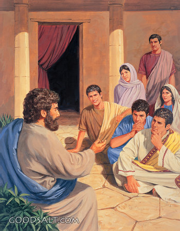 Peter Tells About Jesus Acts 2:38-40 Jesus, teach, preach, collection, disciple, peter, centurion, roman, witness, gentile, cornelius, Tells, household, lifeway, dick wahl PROJECTION - License for PowerPoint™ PRINT – buy a print of this picture; optional frame Bible Hub |