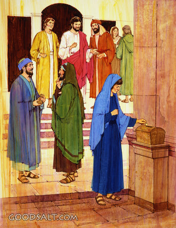 Gift of a Poor Widow Mark 12:42 Luke 21:2 Jesus, collection, widow, gift, poor, sacrifice, offering, commend, treasury, donation, mites, lifeway, lfwas1363 PROJECTION - License for PowerPoint™ PRINT – buy a print of this picture; optional frame Bible Hub |