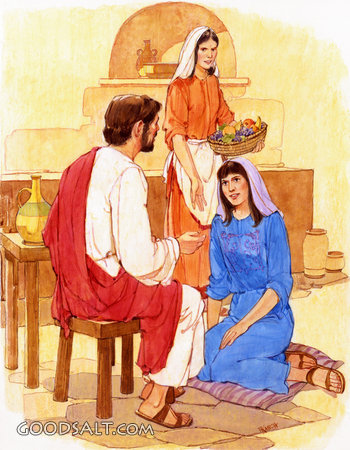 Jesus Visits Mary and Martha Luke 10:38-42 John 11:1-44 John 12:1-7 help, Jesus, kneel, choice, serve, collection, feet, mary, better, martha, visits, lifeway PROJECTION - License for PowerPoint™ PRINT – buy a print of this picture; optional frame Bible Hub |