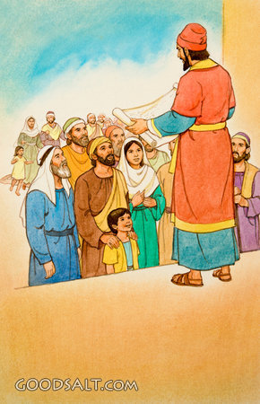 people, read, listen, collection, scroll, crowd, announcement, scripture, message, lifeway