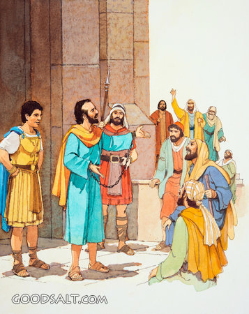 Romans Allow Paul to Speak to Jerusalem Mob. Acts 21:29-40 Acts 22:1-3 speak, collection, jerusalem, paul, guard, chained, mob, romans, to, him, lifeway, ifwas2212, allowed PROJECTION - License for PowerPoint™ PRINT – buy a print of this picture; optional frame Bible Hub |