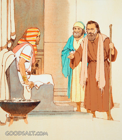 Moses Confronts Pharoah to Let His People Go Exodus 3:10 Exodus 4:15-16 Exodus 5:1 front, standing, collection, striped, throne, of, sitting, headdress, moses, aaron, palace, stick, walking, in, pharoah, lifeway, lfwas2231 PROJECTION - License for PowerPoint™ PRINT – buy a print of this picture; optional frame Bible Hub |