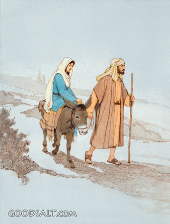 Mary and Joseph Travel by Donkey to Bethlehem Luke 2:4-5 riding, leading, pregnant, travelling, cane, collection, joseph, mary, bethlehem, rope, donkey, stick, on, walking, beside, lifeway, sidesaddle, lfwas2246 PROJECTION - License for PowerPoint™ PRINT – buy a print of this picture; optional frame Bible Hub |