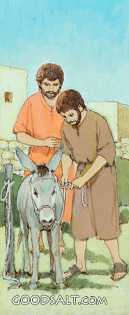 Disciples Obey and Get the Donkey for Jesus Luke 19:29-35 ride, two, Jesus, collection, stone, block, men, jerusalem, wall, pole, taking, young, untying, from, donkey, buildings, is, to, into, in, it, who, lifeway, lfwas2279 PROJECTION - License for PowerPoint™ PRINT – buy a print of this picture; optional frame Bible Hub |