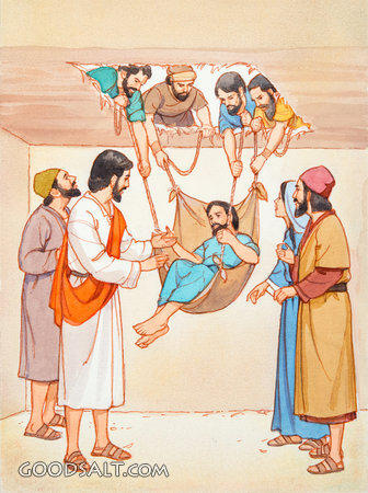 Jesus, heal, paralytic, lower, collection, faith, roof, friends, lifeway