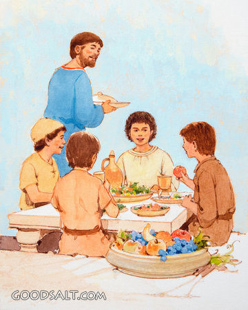 The Hebrew Boys Reject the King's Food Daniel 1:8 collection, food, daniel, abednego, meshach, shadrach, reject, simple, lifeway, fruits and vegetables PROJECTION - License for PowerPoint™ PRINT – buy a print of this picture; optional frame Bible Hub |