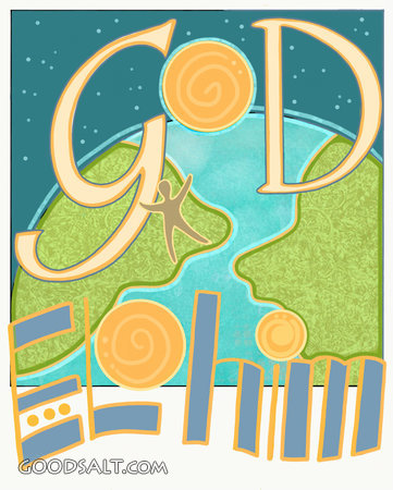 Name of God Elohim Genesis 1:1 rejoice, in the beginning, genesis 1:1, names of god poster, elohim poster art, god of the universe poster, god created the heavens and the earth, god the creator, on the first day god created, god made the world, name of god elohim, genesis poster, poster art genesis, poster art elohim, teal, gold, purple PROJECTION - License for PowerPoint™ PRINT – buy a print of this picture; optional frame Bible Hub |