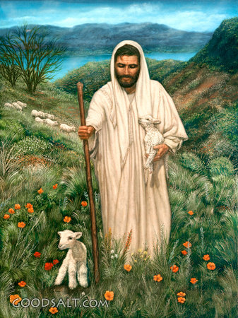 Good Shepherd, Christ As Shepherd With Two Lambs Numbers 27:17 Psalm 23:1 Isaiah 40:11 John 10:11 John 10:14 poppy, poppies, christ, Jesus, safety, fold, shepherd, field, lamb, staff, safe, secure, comfort, good, flock of sheep, good shepherd, christ as shepherd with two lambs PROJECTION - License for PowerPoint™ PRINT – buy a print of this picture; optional frame Bible Hub |