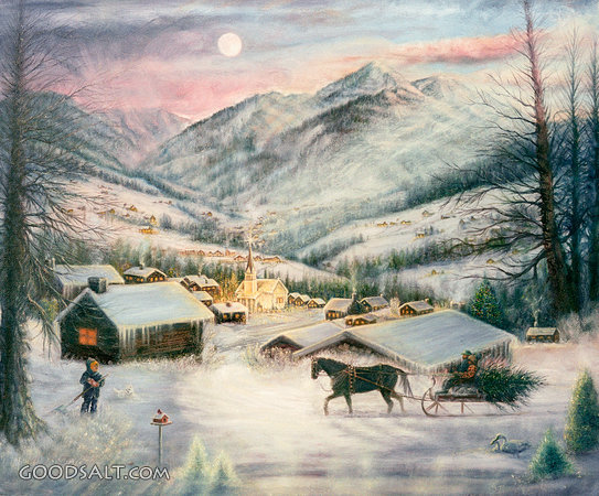 Most Wonderful Time of Year, Snowy Christmas Village Luke 2:14 twilight, sleigh, moon, church, log cabin, snow, winter, village, christmas, mountains, christmas tree, horse drawn, old fashioned, village church, old fashioned art style, christmas scene, christmas card, christmas card art, horse drawn sleigh, most wonderful time of year, snowy christmas village PROJECTION - License for PowerPoint™ PRINT – buy a print of this picture; optional frame Bible Hub |