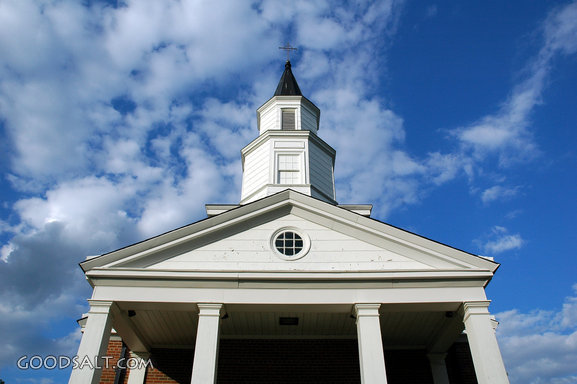 sky, chapel, upward, church, column, towering, cloud, steeple, blue, building, cross