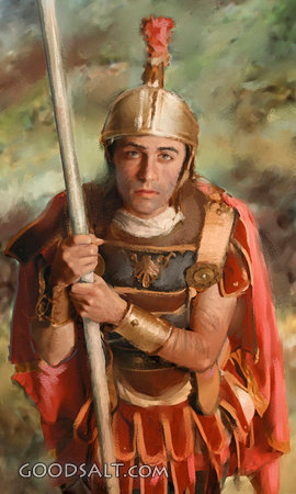 Roman Soldier Looking Up at the Cross Matthew 27:54 speak, think, week, christ, sorrow, beseech, thinking, decision, scene, earnest, belief, sad, repentant, faith, armour, centurion, soldier, spear, believing, roman, repent, cross, of, hear, helmet, witness, guard, word, armor, easter, passion, servant, crucifixion PROJECTION - License for PowerPoint™ PRINT – buy a print of this picture; optional frame Bible Hub |