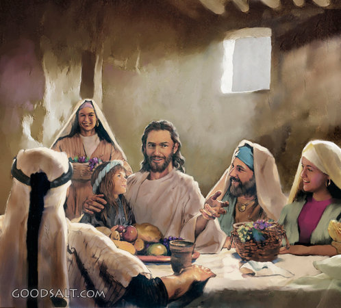 Fellowship With Jesus John 12:1 people, Jesus, talk, talking, listening, table, eat, eating, child, sharing, fellowship, meal, share, family, fellowshipping, dinner, dine, dining, disciples, and, friends, jesus with children, jesus and friends, jesus and child, jesus eating with friends, jesus with people, with PROJECTION - License for PowerPoint™ PRINT – buy a print of this picture; optional frame Bible Hub |