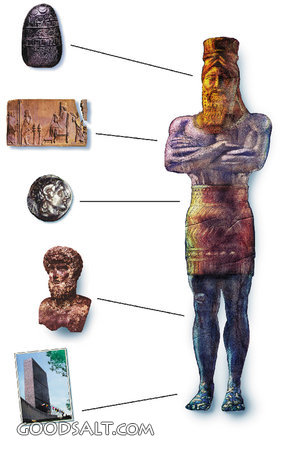 Kingdoms of Nebuchadnezzar's Dream Daniel 2 mixed, metal, stone, history, rock, head, old, bronze, clay, feet, idol, iron, leg, silver, statue, symbol, waist, rome, medo-persia, brass, thigh, dominion, vision, kingdom, king, dream, daniel, prophecy, babylon, nebuchadnezzar, prophet, belly, chest, understand, chart, gold, toe, troubled, arm, reveal, greece, archeology PROJECTION - License for PowerPoint™ PRINT – buy a print of this picture; optional frame Bible Hub |