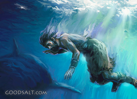water, whale, ocean, sea, man, disciple, fish, male, jonah, under, overboard, lars justinen, big fish, under water
