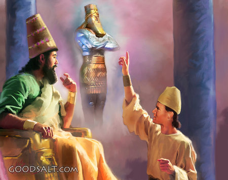 Daniel Interprets Nebuchadnezzar's Dream Daniel 2:31-33 explain, testament, mixed, story, metal, stone, history, rock, head, old, bronze, clay, feet, idol, iron, silver, statue, symbol, waist, rome, interpret, interpretation, medo-persia, brass, image, thigh, dominion, vision, kingdom, king, dream, daniel, prophecy, babylon, nebuchadnezzar, prophet, belly, chest, understand, gold, toe, troubled, reveal, greece, kingdoms, arm raised, interprets, legs, arms folded PROJECTION - License for PowerPoint™ PRINT – buy a print of this picture; optional frame Bible Hub |