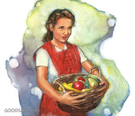 happy, healthy, harvesting, girl, harvest, basket, smile, smiling, fruit, offering, vegetables, wholesome