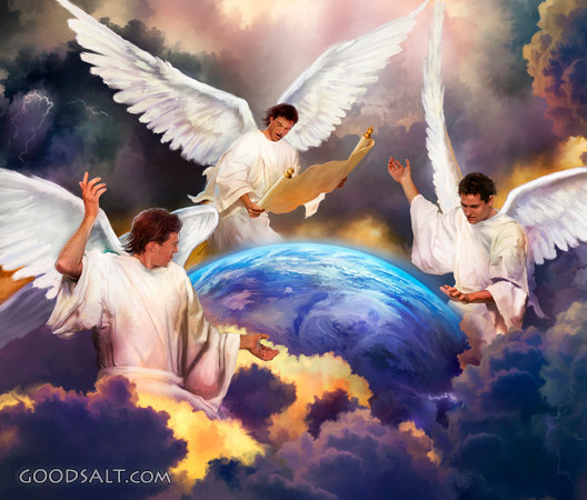 Third Angel's Message Revelation 14:6-12 truth, 3, warn, messenger, earth, scroll, three, mercy, revelation, announcement, message, clouds, angels, wings PROJECTION - License for PowerPoint™ PRINT – buy a print of this picture; optional frame Bible Hub |