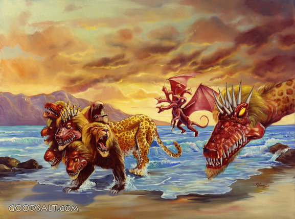 The Dragon Gives the Beast Power and Authority Revelation 13 power, bad, creature, great, animal, scary, ocean, sea, head, vision, devil, dragon, lion, kingdom, speaking, revelation, shore, blasphemy, seven, beast, terrible, serpent, awful, diverse, leopard, authority, land, horn, evil, antichrist PROJECTION - License for PowerPoint™ PRINT – buy a print of this picture; optional frame Bible Hub |