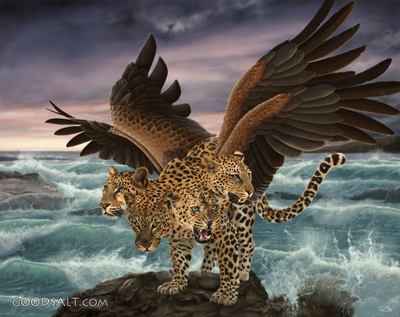 Daniel 7 Leopard Beast Daniel 7:2-7 prophetic, great, sea, interpret, dominion, vision, four, wisdom, wise, dream, daniel, prophecy, nebuchadnezzar, night, speed, leopard, greece, wings, Alexander, Belshazzar, beasts, heads, swiftness PROJECTION - License for PowerPoint™ PRINT – buy a print of this picture; optional frame Bible Hub |