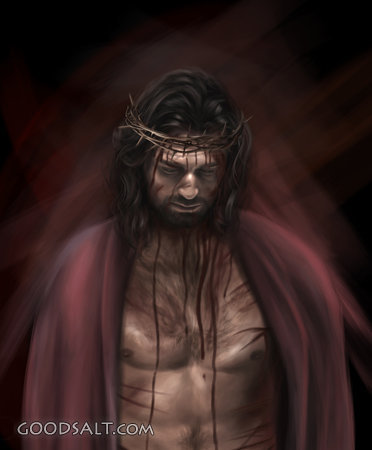 Jesus John 19:1-4 Mark 15:16-20 Matthew 27:27-31 crucified, christ, Jesus, crown, lamb, trial, king, sanhedrin, cross, pilate, saviour, Jews, Mocked, Phil, McKay, scurged PROJECTION - License for PowerPoint™ PRINT – buy a print of this picture; optional frame Bible Hub |