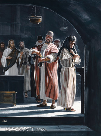Widow's Mite Mark 12:41-44 Luke 21:1-4 two, christ, Jesus, mite, give, jew, ceremony, church, woman, humble, men, widow, gift, giving, synagogue, hypocrite, pharisee, john steel PROJECTION - License for PowerPoint™ PRINT – buy a print of this picture; optional frame Bible Hub |