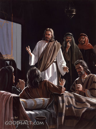 Jesus Rebukes the Fever Luke 4:38-39 Mark 1:29-31 Matthew 8:14-15 christ, Jesus, heal, healing, healer, girl, men, apostle, disciple, resurrect, peter, resurrected, jairus, female, fever, john steel, rebukes, peter's mother-in-law PROJECTION - License for PowerPoint™ PRINT – buy a print of this picture; optional frame Bible Hub |