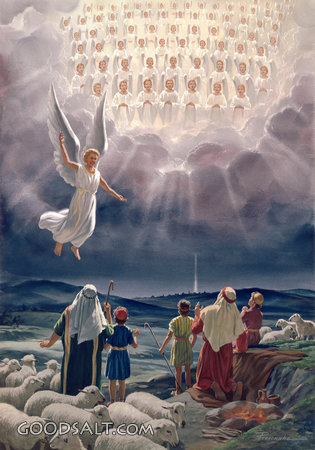 Angles Appearing Before Shepherds Luke 2:8-14 angel, sing, christ, Jesus, singing, birth, worshipping, shepherd, sheep, savior, choir, chorus, bethlehem, flock, christmas, angels PROJECTION - License for PowerPoint™ PRINT – buy a print of this picture; optional frame Bible Hub |