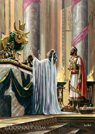 Jezebel Giving Homage to Golden Idols 1 Kings 21:25-26 flame, bull, idol, worship, altar, queen, baal, golden, sacrifice, palace, royalty, offering, jezebel, john steel PROJECTION - License for PowerPoint™ PRINT – buy a print of this picture; optional frame Bible Hub |
