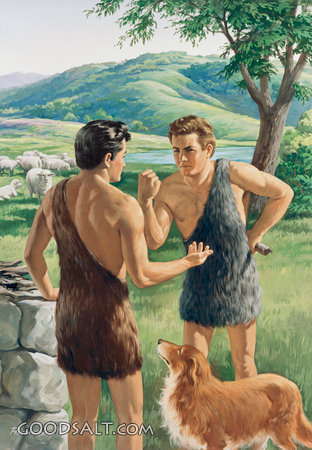 Cain Threatening His Brother Able With Violence Genesis 4:8 murder, anger, jealous, cain, jealousy, sacrifice, dog, resentment, retro, able, pacific press publishing PROJECTION - License for PowerPoint™ PRINT – buy a print of this picture; optional frame Bible Hub |