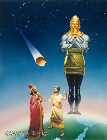Daniel Interprets King Nebuchadnezzar's Dream Daniel 2:31-34 rock, head, bronze, iron, silver, statue, interpretation, king, dream, daniel, nebuchadnezzar, chest, herber pintos, iron legs, miry clay feet, thighs, pacific press publishing PROJECTION - License for PowerPoint™ PRINT – buy a print of this picture; optional frame Bible Hub |