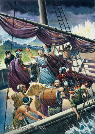 Paul Before Ship Wreck Acts 27:14 Acts 27:18-19 apostle, storm, paul, ship in storm, herber pintos, disciples on boat, Cargo, crete, acts 27, pacific press publishing PROJECTION - License for PowerPoint™ PRINT – buy a print of this picture; optional frame Bible Hub |